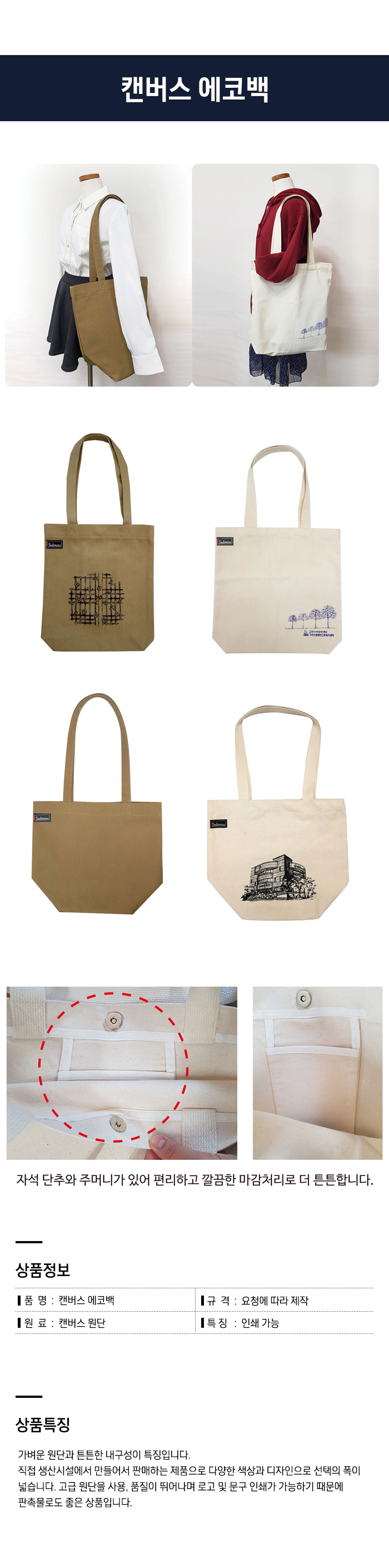 캔버스 에코백(인쇄가능)